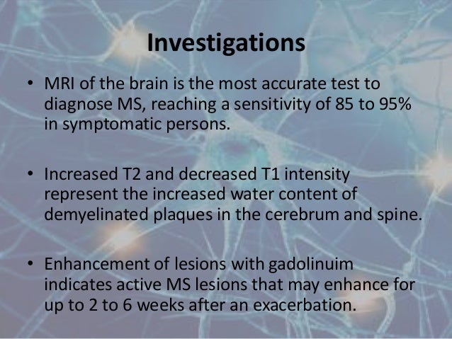 A disease in which the covering of the nerves gradually becomes destroyed damaging a persons. Exacerbations have been typically defined as episodes of focal neurological disturbance lasting more than 24 h without an alternate explanation and with a preceding period of clinical stability lasting at least 30 days Fluctuations in symptoms or worsening of symptoms with fever heat or infection are not considered true exacerbations. Ms - Frau Anrede Last.